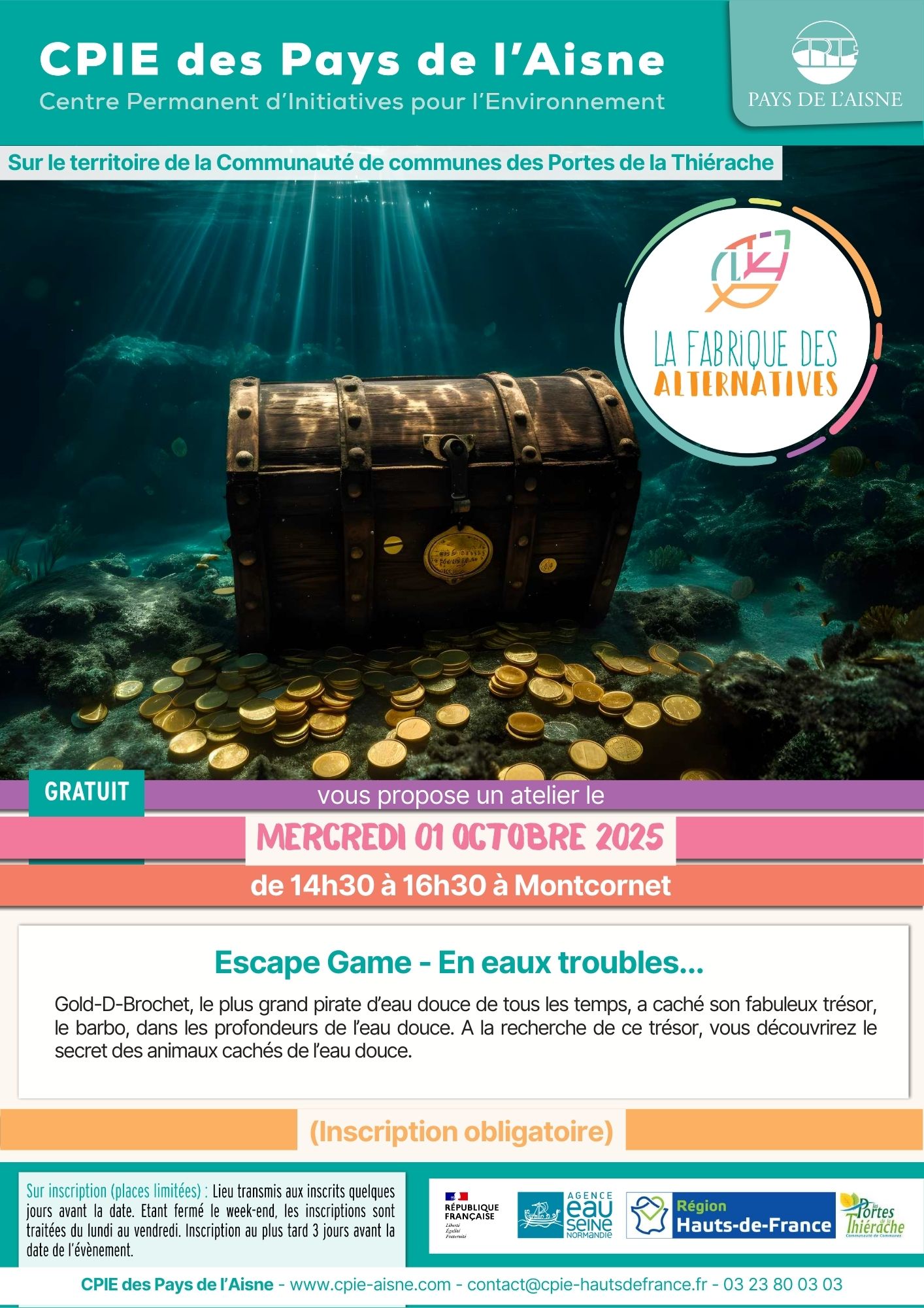 Escape game “En eaux troubles...” MERCREDI 01 OCTOBRE 2025 de 14h30 à 16h30 à Montcornet