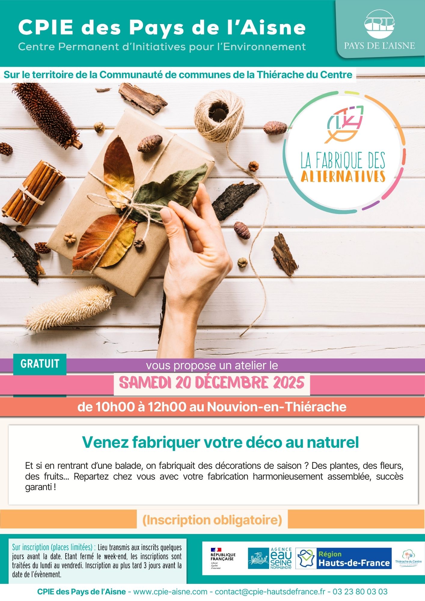 • Contact Atelier "Venez fabriquer votre déco au naturel " SAMEDI 20 DÉCEMBRE 2025 de 10h00 à 12h00 au Nouvion-en-Thiérache