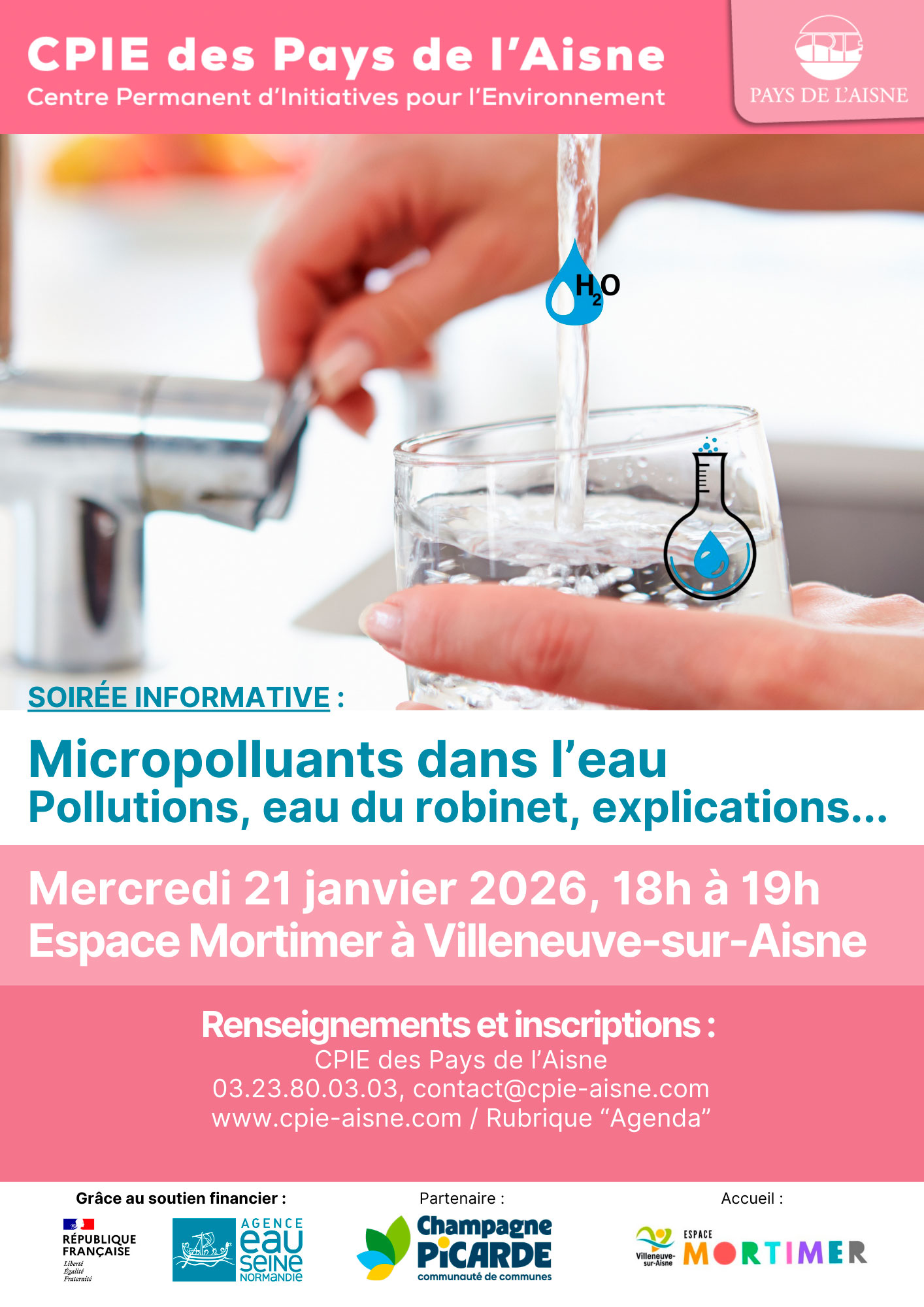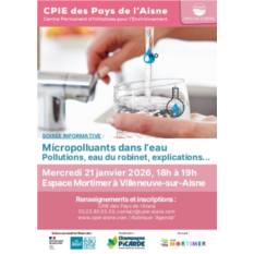 Soirée informative : Micropolluants dans l’eau Pollutions - Mercredi 21 janvier 2026, 18h à 19h à Villeneuve-sur-Aisne (02)