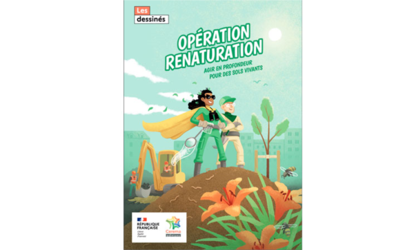 Cette publication en bande dessinées explique les principes de la renaturation des sols qui permet de restituer leurs fonctionnalités et leur vitalité. C’est ainsi qu’ils pourront jouer le rôle clé qu’ils tiennent dans la lutte contre le changement climatique. Les sols sont en effet au cœur des enjeux d'adaptation au changement climatique en particulier dans la lutte contre les ilots de chaleur.